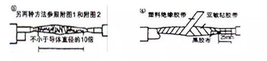 4.先用不同塑料絕緣膠帶對纏繞部分包扎兩層,包扎要緊,亞敏粘膠帶(黑色)包扎三層,每包扎一層用手?jǐn)D壓一次,保證包扎質(zhì)量,最后用塑料絕緣膠帶包扎兩層即可。
